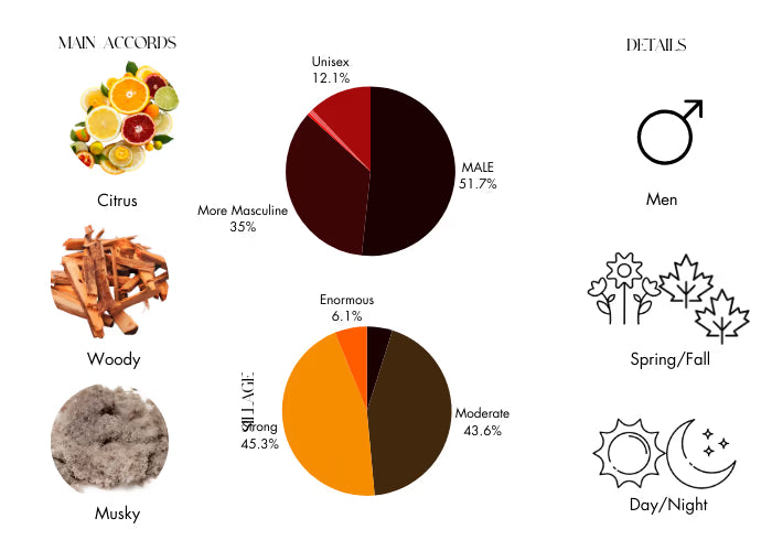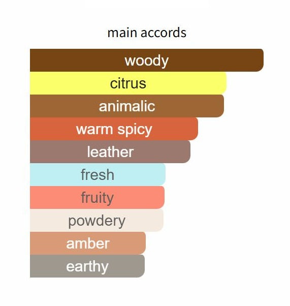 The heart of this fragrance unveils a harmonious fusion of leather, Cambodian oud, white sandalwood, patchouli leaf, and jasmine. As the scent matures, the base notes of oakmoss, white musk, ambergris, and vanilla reveal themselves, leaving a long-lasting and mesmerizing trail.