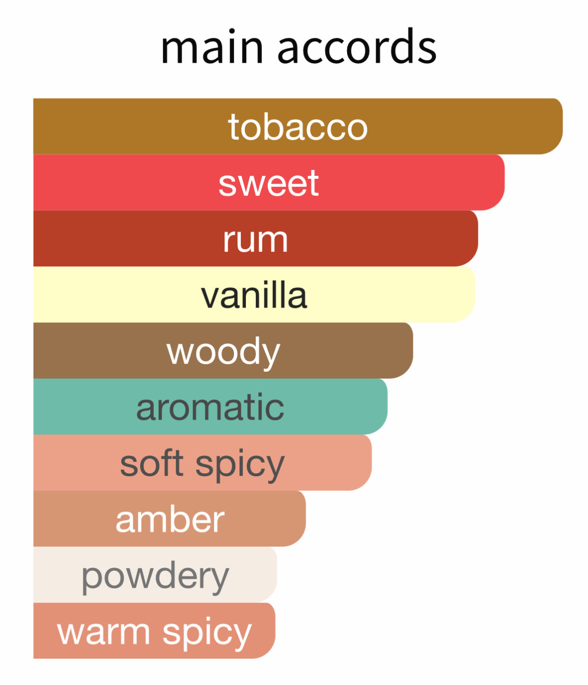 The base notes comprise Tobacco leaf, Vanilla, and Styrax, creating a memorable scent that stands out. Inspired by the sweet aroma of opened cigar boxes, old leather bar stools, and fine aged liquor, this fragrance is for those who seek a unique olfactory experience.