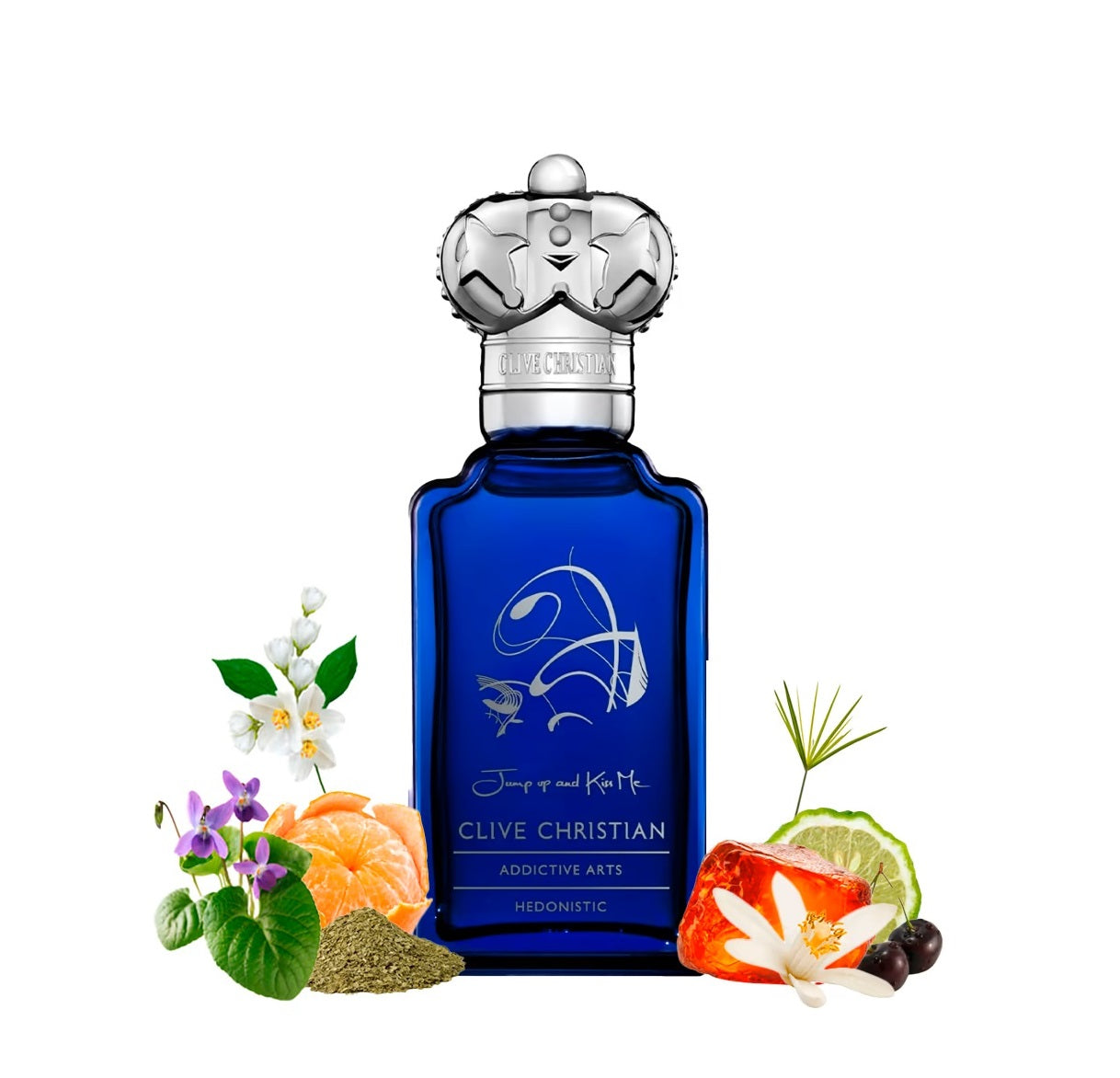 Jump Up and Kiss Me Hedonistic (2021) is a part of the Addictive Arts collection. It employs innovative perfume technology called AddictiveFusion, which captures molecules through a unique alchemical process exclusive to Clive Christian. This distinctive fragrance invites wearers into a realm of luxury and enjoyment, making it an irresistible option for anyone in search of an alluring and sensual scent experience.