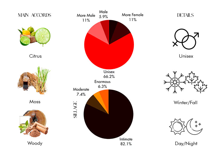 L Red Tea Vetiver begins with a vibrant splash of Lemon Primofiore and Bergamot, delivering a refreshing and energizing start. At its core, the soothing warmth of Rooibos Tea emerges, providing a tranquil and smooth essence. L Red Tea Vetiver eventually settles into a gentle base of Musk and Sandalwood. With its refined and calming character, it captures the soft radiance of dawn.