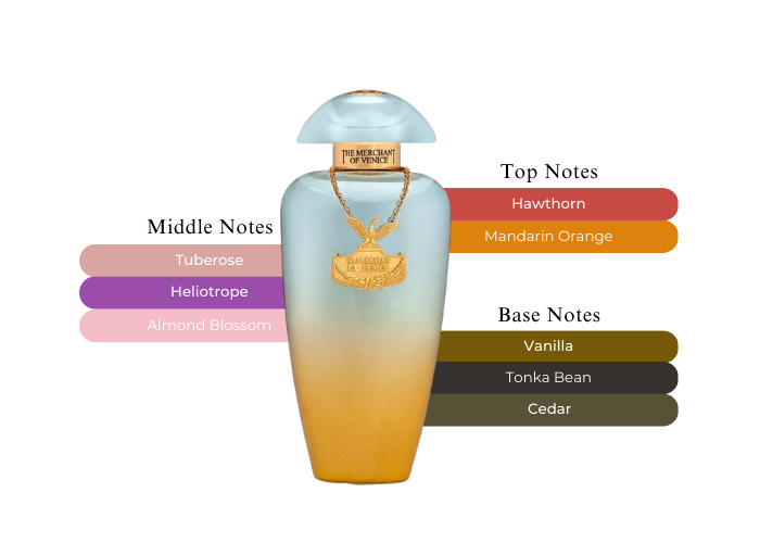 La Fenice Pour Femme opens with a burst of mandarin orange, complemented by the subtle heat of exotic floral notes. These captivating notes dance together, evoking a sense of excitement & anticipation. The rich and enticing base notes of vanilla & cedarwood create a sweet and woody foundation that lingers on the skin.