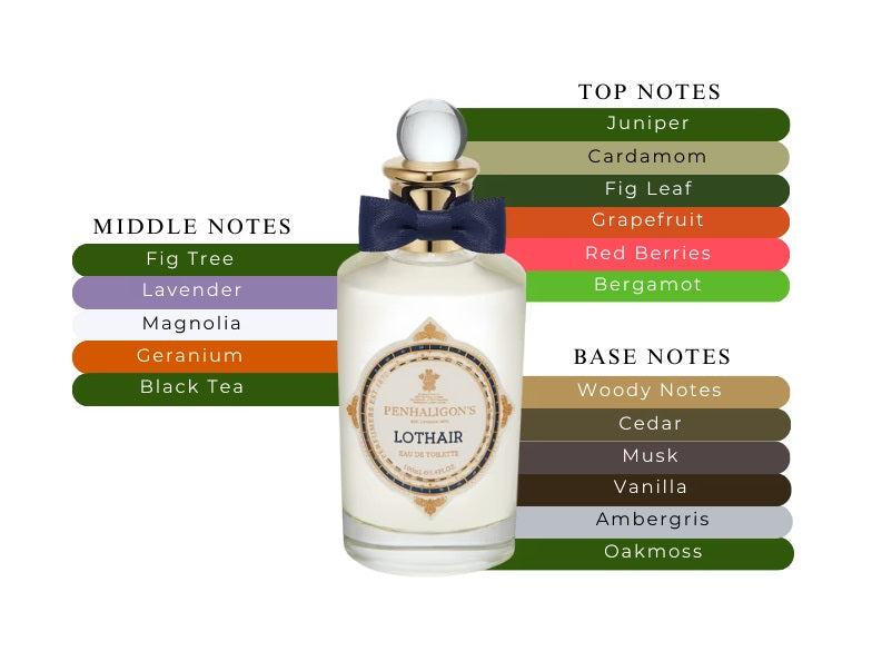 Lothair opens with an invigorating burst of red berries, juniper berry, cardamom, bergamot, grapefruit, and fig leaf. This vibrant introduction sets the stage for the heart notes, where the creamy richness of fig milk blends seamlessly with the floral elegance of lavender, magnolia, and geranium, while black tea adds a refined depth. As the scent settles, the base notes of smooth vanilla, sensuous musks, cedarwood, ambergris, wenge, and earthy oakmoss create a lasting impression of sophistication and warmth.