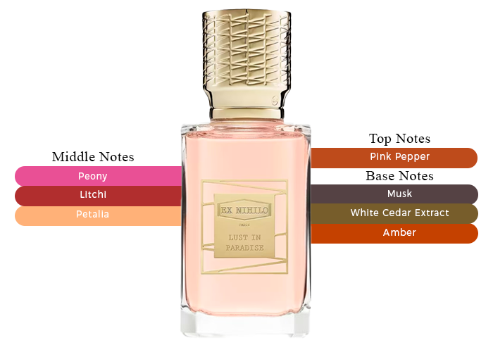 Ex Nihilo's Lust In Paradise opens with a vibrant burst of Pink Pepper, while the heart reveals a stunning combination of Peony, Litchi, and Petalia, creating a floral cascade that captivates the senses. The base notes of Musk, White Cedar Extract, and Amber provide depth and allure to the fragrance. Lust In Paradise is an irresistibly romantic and mesmerizing scent that conjures images of a fairytale getaway.