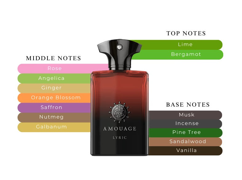Lyric Man features a floral-spicy profile that resonates with the profound sound of eternity. Enhanced with angelica and rose, Lyric Man pays homage to the self-assured gentleman who embraces his desires. Its enduring fragrance is a luxurious fusion of bergamot, lime, rose, angelica, orange blossom, green galbanum, spicy ginger, nutmeg, saffron, pine, sandalwood, vanilla, musk, and frankincense.