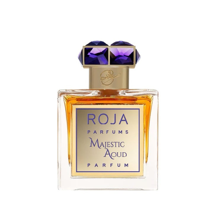 Majestic Aoud opens with a touch of bergamot and rosemary, adding a fresh brightness. In the heart, velvety notes of osmanthus mingle with jasmine and Rose de Mai, creating a soft floral elegance. The base is deeply grounded with rich oud, patchouli, and earthy civet, while castoreum and saffron add a leathery warmth, enhancing the scent's depth and complexity.