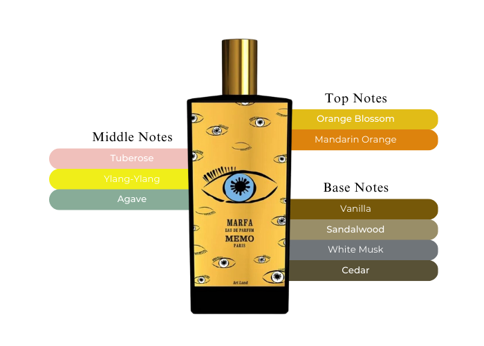 This scent provides a distinctive olfactory journey, beginning with the captivating aroma of tuberose, a mesmerizing and unforgettable bloom. As it develops, Marfa  unveils a floral woody musk blend that is both adaptable and alluring. Its magnetic appeal echoes the essence of tuberose Absolute, enticing with its lingering and irresistible scent.