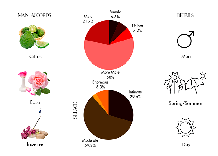 Millesime 1849 EDP opens with vibrant top notes of Bergamot, Lemon, and Grapefruit, offering a refreshing and invigorating start. As the scent unfolds, the heart notes of Ylang Ylang, Jasmine, Rose, and Iris create a harmonious blend of floral elegance, adding depth and complexity. Finally, the base notes of Bay Leaf, Thyme, Cedar, and Incense provide a warm and grounding finish, leaving a lasting impression.