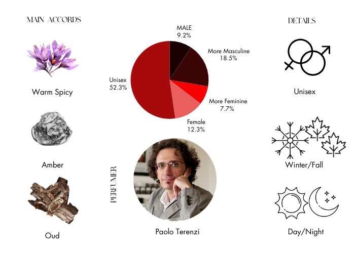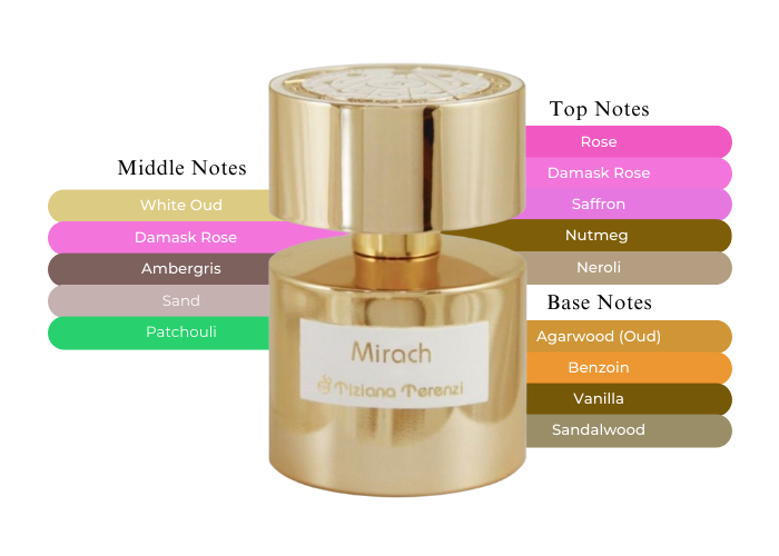 Mirach by Tiziana Terenzi inspired by a star in the Andromeda constellation, reflects the majesty and enigma of the cosmos. Its profile shifts from gentle to bold, paralleling the life cycle of a star. The fragrance begins with airy floral top notes that swiftly transition into a warm, spicy foundation. It features a distinctive, exotic essence of oud, complemented by the richness of amber and the complexity of balsamic spices.