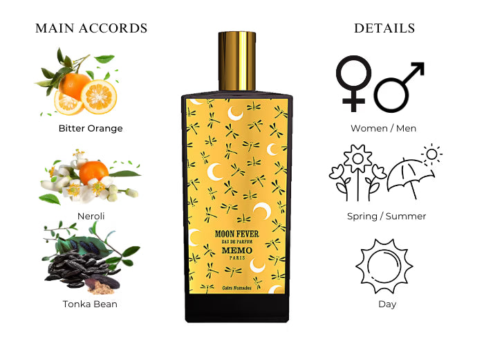 Moon Fever features a woody aromatic profile that is sure to make a memorable impact. The initial burst of bitter orange, lemon, and grapefruit offers a lively and invigorating start, while the heart notes of lemon verbena, clary sage, and neroli infuse a touch of herbal sophistication. The base notes of leather, tonka bean, and vetiver create a sensual and earthy backdrop. Moon Fever captures the enigmatic charm of a moonlit night, encouraging you to embrace the freedom and delight of weightlessness.