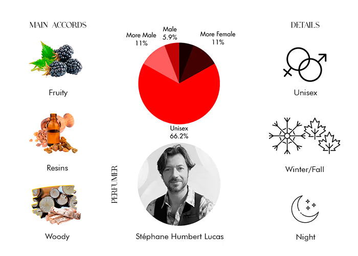 The base notes of styrax, ambergris, Atlas cedar, cedar, sandalwood, birch, and musk provide a strong, enduring foundation. These elements interweave to create a warm, woody finish that is both comforting and bold.