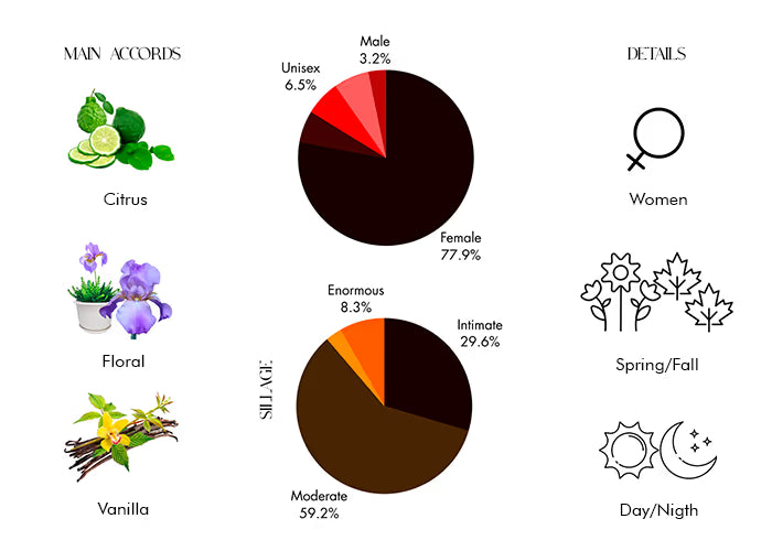 The base notes feature a warm and enveloping combination of cedarwood oil, bourbon vanilla premium Madagascar infusion, and white musk. This woody and musky foundation adds depth and longevity to the fragrance, ensuring it lingers on your skin throughout the day.
