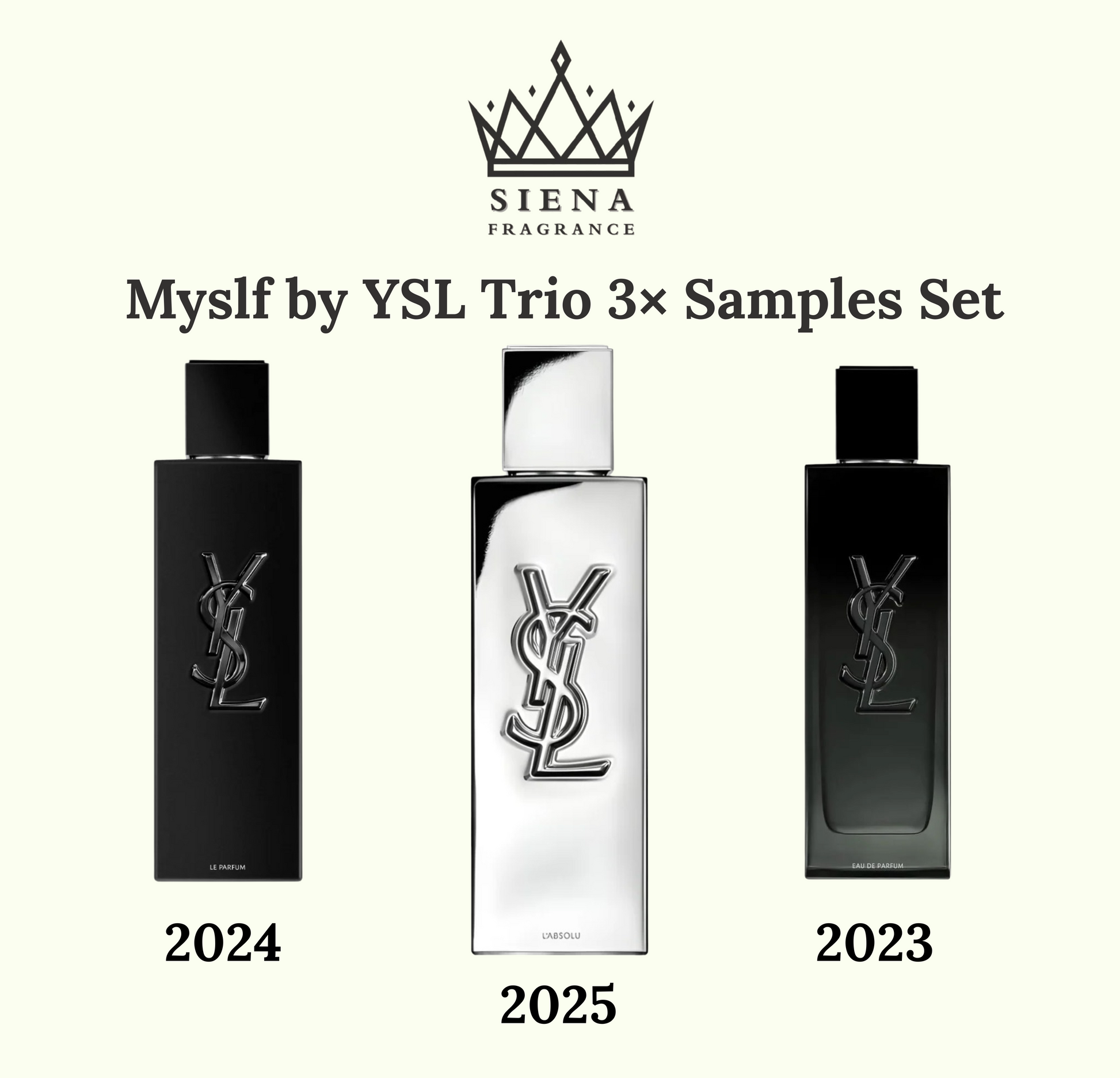 Discover the full expression of Myslf with this curated 3-piece Decant/Sample collection, showcasing every major interpretation of the iconic Myslf DNA.