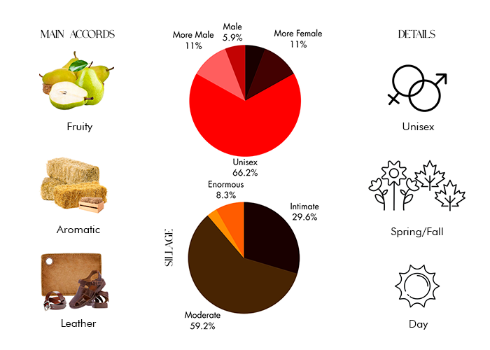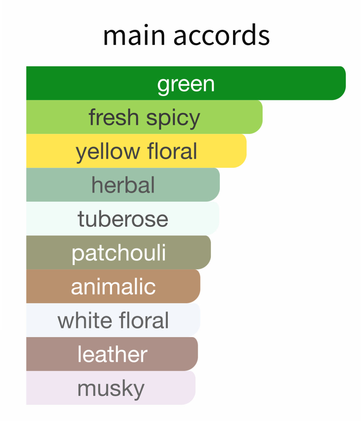 Narcisse Taiji is a true delight for the senses, opening with a refreshing blend of Pear, Ginger Root, and Tuberose. The invigorating top notes set the stage for the heart notes, comprising of Narcissus, Absolute of Hay and Bran, delivering a blend of floral and aromatic tones that intermingle to perfection. The fragrance concludes with warm, sensual base notes of Leather, Patchouli, and Musk.