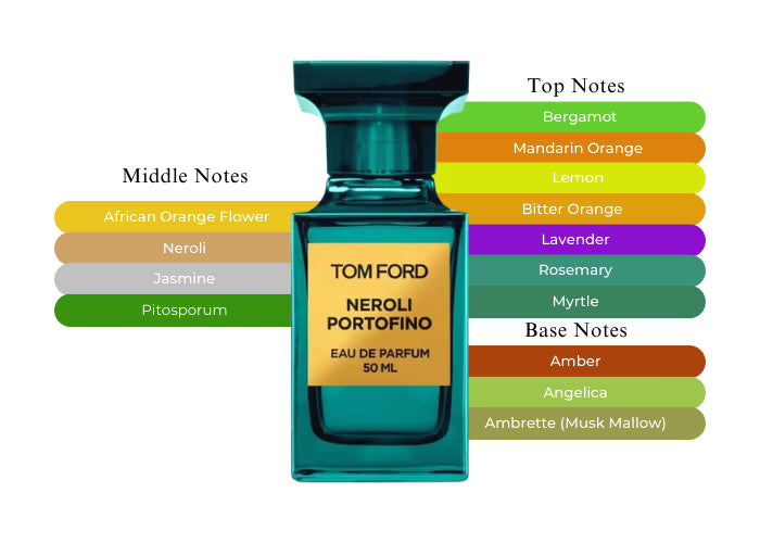 Neroli Portofino EDP by Tom Ford captures the essence of the refreshing breezes, crystal-clear waters, and lush greenery of the Italian Riviera. It centers around Tunisian neroli, Italian bergamot, and Sicilian lemon, imparting a bright, effervescent, and vibrant essence. Additional notes include orange flower, amber, mandarin, jasmine, and lavender. The heart of the fragrance features African orange flower, neroli, jasmine, and pittosporum, while the base is enriched with white musk and amberwood.