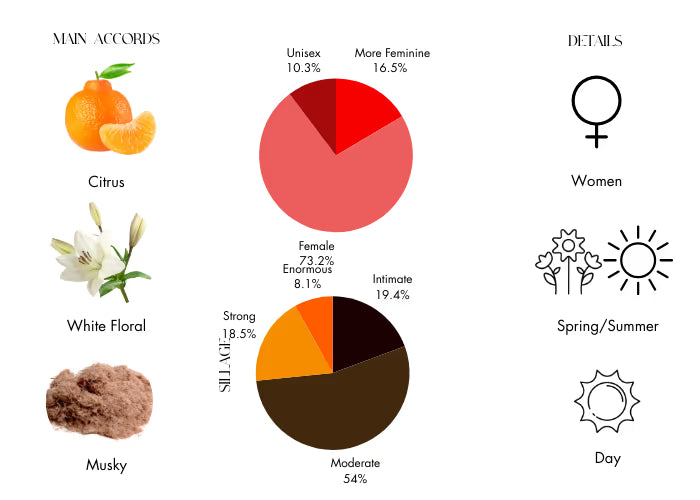 Nolita by Bond No9 opens with the enchanting top notes of freesia and tangerine, instantly capturing your senses with a burst of freshness. The heart notes reveal a delicate blend of jasmine sambac and lily, adding a touch of floral sophistication. As the fragrance settles, the base notes of amber, musk, and sandalwood create a warm, lasting impression that lingers beautifully on the skin.