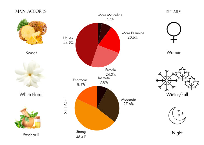 Nuits De Noho by Bond No9 opens with a fresh burst of bergamot, juicy mandarin, and crisp pineapple leaves—an energizing trio that instantly awakens the senses. The heart of the fragrance blooms with soft jasmine and rich rosewood, adding a romantic touch that’s both warm and inviting. As the scent settles, a comforting base of creamy vanilla, earthy patchouli, and grey musk lingers, leaving a smooth and sensual trail that lasts all day.