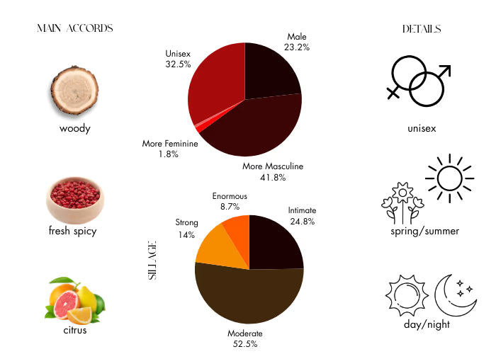 Opus 1870 opens with top notes of pepper, yuzu, and coriander, leading into a heart of incense, rose, and cinnamon, and concluding with a base of Virginia cedar, sandalwood, and musk. This aromatic and spicy scent invites you to explore your signature fragrance, offering an exceptional scent profiling experience. Opus 1870 delivers a delightful whiff of something exotic and enchanting.