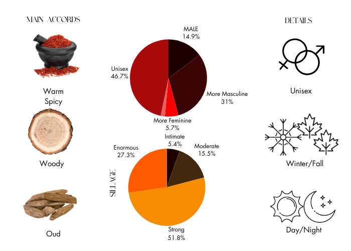 This Maison Francis Kurkdjian Oud Extrait fragrance embodies ‘the exotic’, the harmony of opposites, rich and delicate simultaneously, like the woody note of agarwood mixed with cedarwood. This masculine fragrance also reveals a truly sensual aroma that lingers on your skin for hours. This is a clean, fresh, spicy, warm woody scent with a good amount of sweet, earthy patchouli.