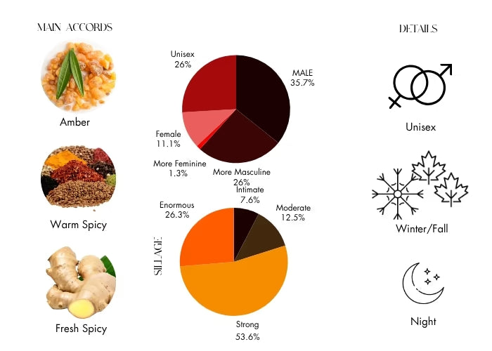 Oud Zarian opens with a bold yet inviting blend of spices, bright bergamot, warm ginger, and smoky frankincense. This captivating introduction sets the stage for a heart of delicate May rose, adding a soft floral layer that balances the richness of the scent. As it settles, the base reveals a mesmerizing combination of tonka bean, licorice, myrrh, sandalwood, patchouli, and the centerpiece—precious oud—delivering depth, warmth, and a lasting impression.