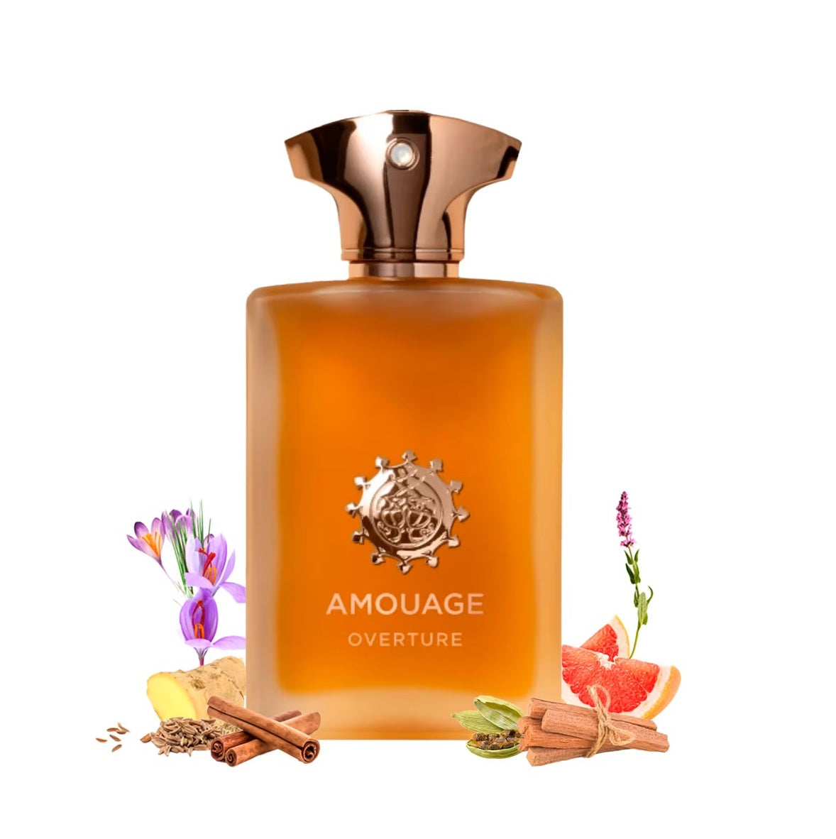 Overture Man opens with a powerful blend of rich cognac, complemented by the warm spice of cumin and the zesty brightness of grapefruit. As it develops, the heart reveals notes of Myrrh, Sandalwood, and smoky Frankincense, embodying a gentleman's enigmatic charm. The fragrance is further enhanced by animalic undertones and leather, resulting in a distinctively masculine aroma.