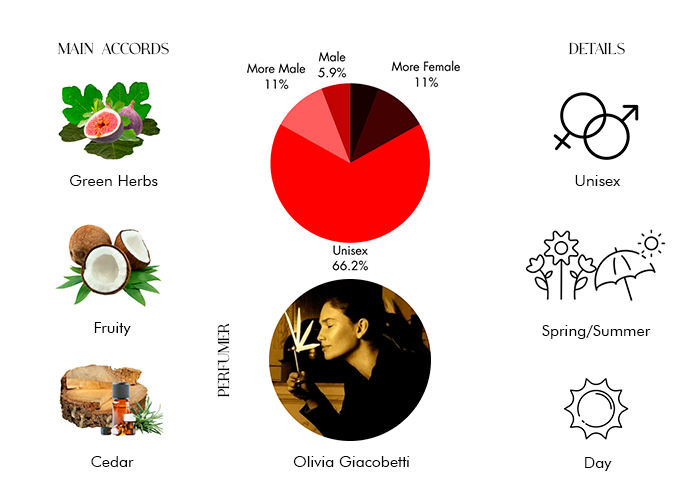 Philosykos EDP opens with top notes of Fig Leaf and Fig, followed by a heart of Green Notes and Coconut. Its base comprises Fig Tree, Woody Notes, and Cedar. With its aromatic and woody characteristics, Philosykos EDP radiates sophistication and charm, making it ideal for any occasion.