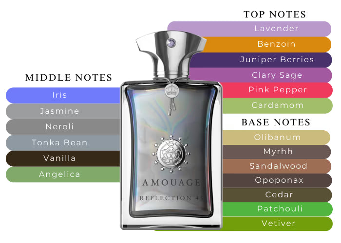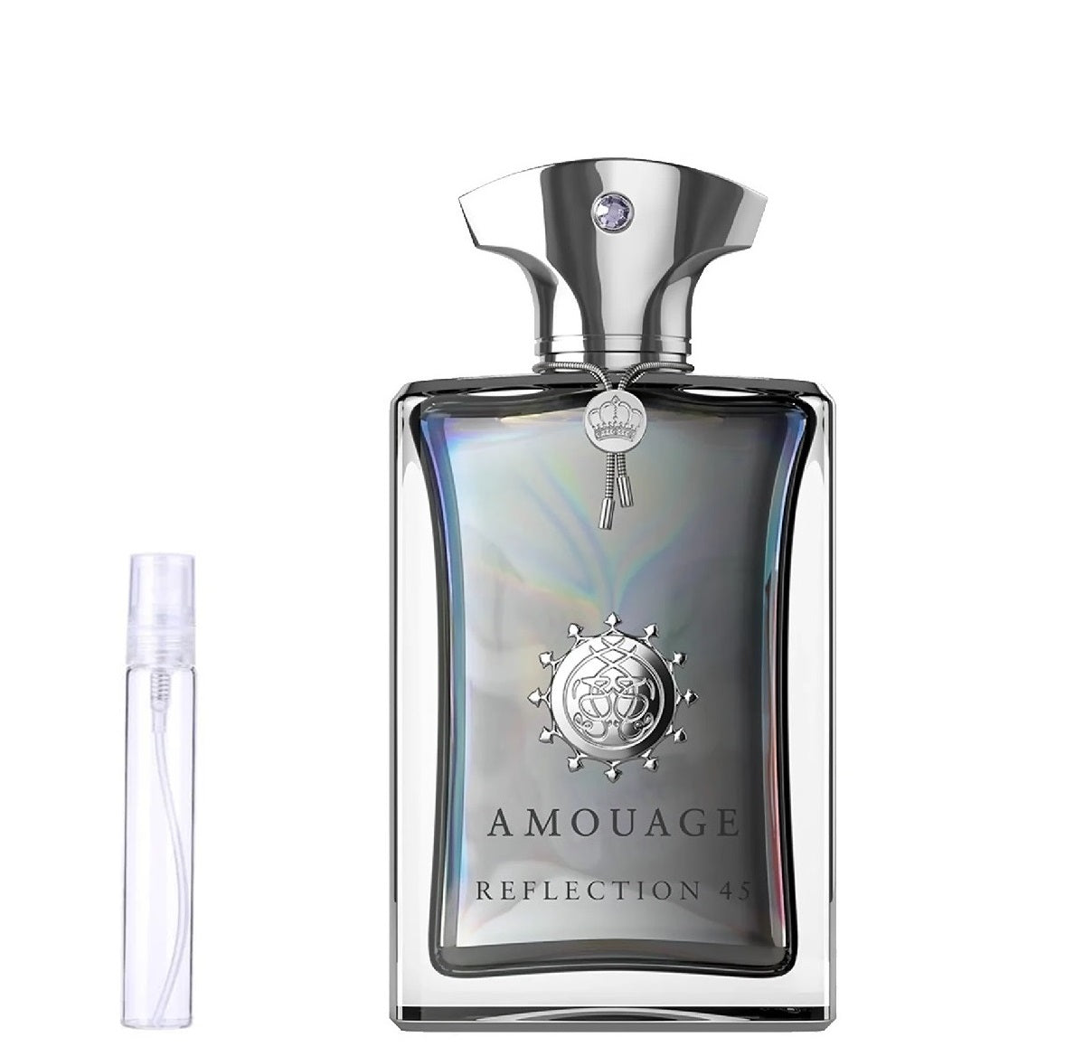 Reflection 45 reinterprets one of Amouage's classic signatures by incorporating spicy top notes and rich floral textures. This woody floral musk scent is intended to transcend both time and place, providing a compelling and masculine olfactory experience.