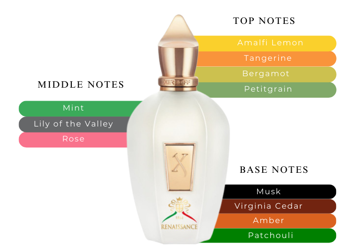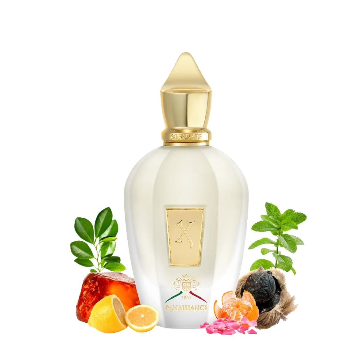Renaissance begins with vibrant citrus notes of Calabrian bergamot, mandarin, and lemon, reflecting the sun-drenched Calabria region of Southern Italy. It then unfolds into fresh green middle notes that form a floral-herbal bouquet, exuding a soothing sweetness and romance. The fragrance concludes with warm base notes of amber and musk, leaving a memorable impression.