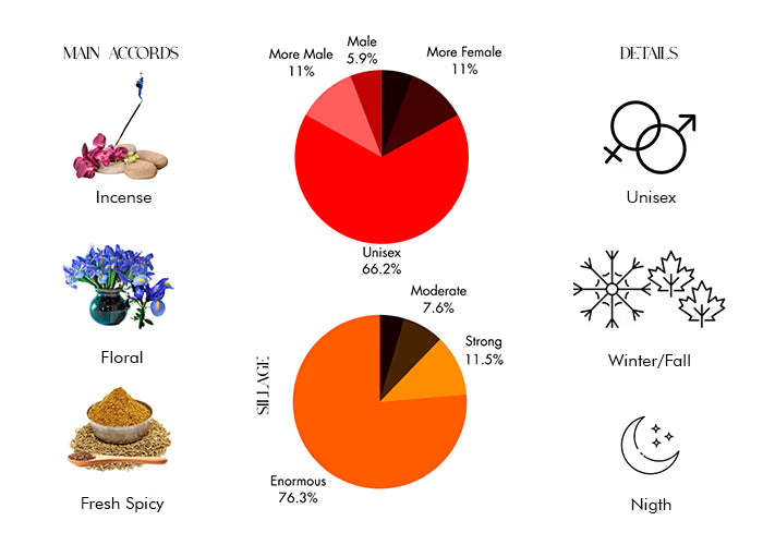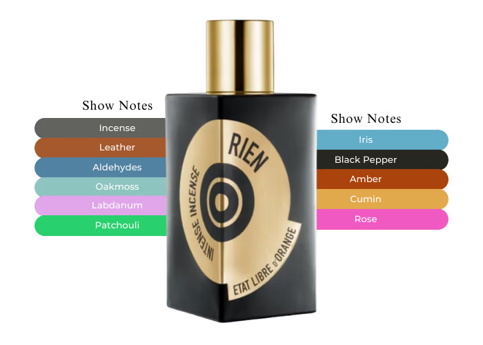 The top notes of Rien Intense Incense  feature a striking combination of black pepper, safraleine (a unique blend of saffron and leather accord), and incense essence orpur.