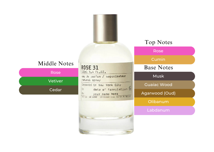 Le Labo Rose 31 features the centifolia rose, celebrated for its nuanced character, which is beautifully complemented by warm, inviting notes. The fragrance opens with a delightful fusion of rose and cumin, leading into a heart of rose, vetiver, and cedar. The base notes include musk, guaiac wood, agarwood (oud), olibanum, and labdanum, adding richness and sensuality to the overall composition.