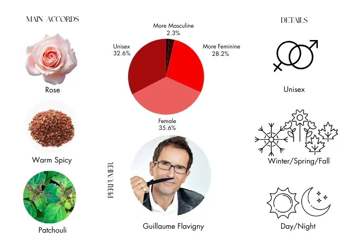 Rose Prick by Tom Ford opens with a harmonious blend of May rose, Turkish rose, and Bulgarian rose, providing a rich and opulent floral scent. The heart notes introduce a spicy twist with Sichuan pepper and turmeric, adding an exotic and warm touch. Finally, the base notes of patchouli and tonka bean offer a deep, earthy finish that lingers beautifully on the skin.