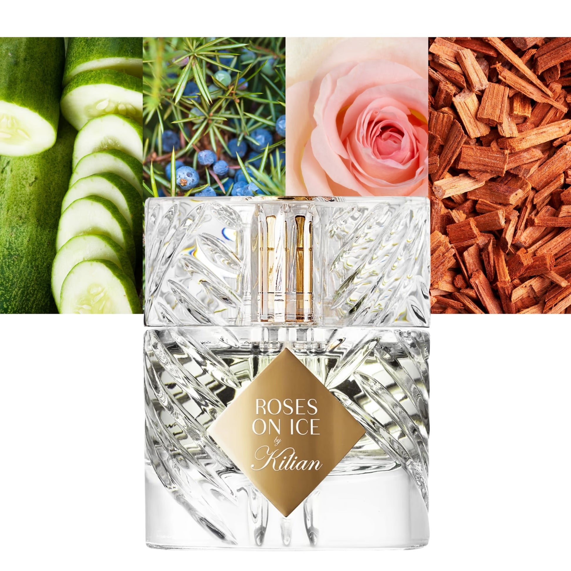 Roses on Ice by Kilian begins with a refreshing blend of aquatic cucumber and the invigorating essence of juniper berries, evoking a cool sensation. At its core lies the elegant and lush Rose Centifolia, contributing a hint of voluptuousness. As the fragrance evolves, the drydown unveils the sharp yet richly infused notes of gin, complemented by the warmth of sandalwood and musk.
