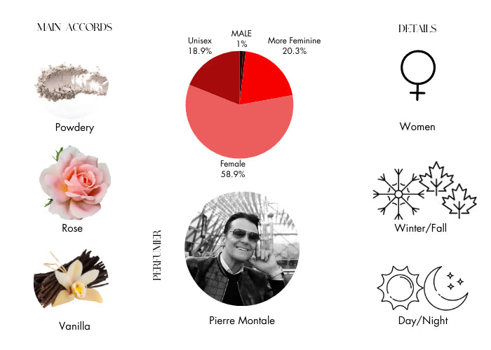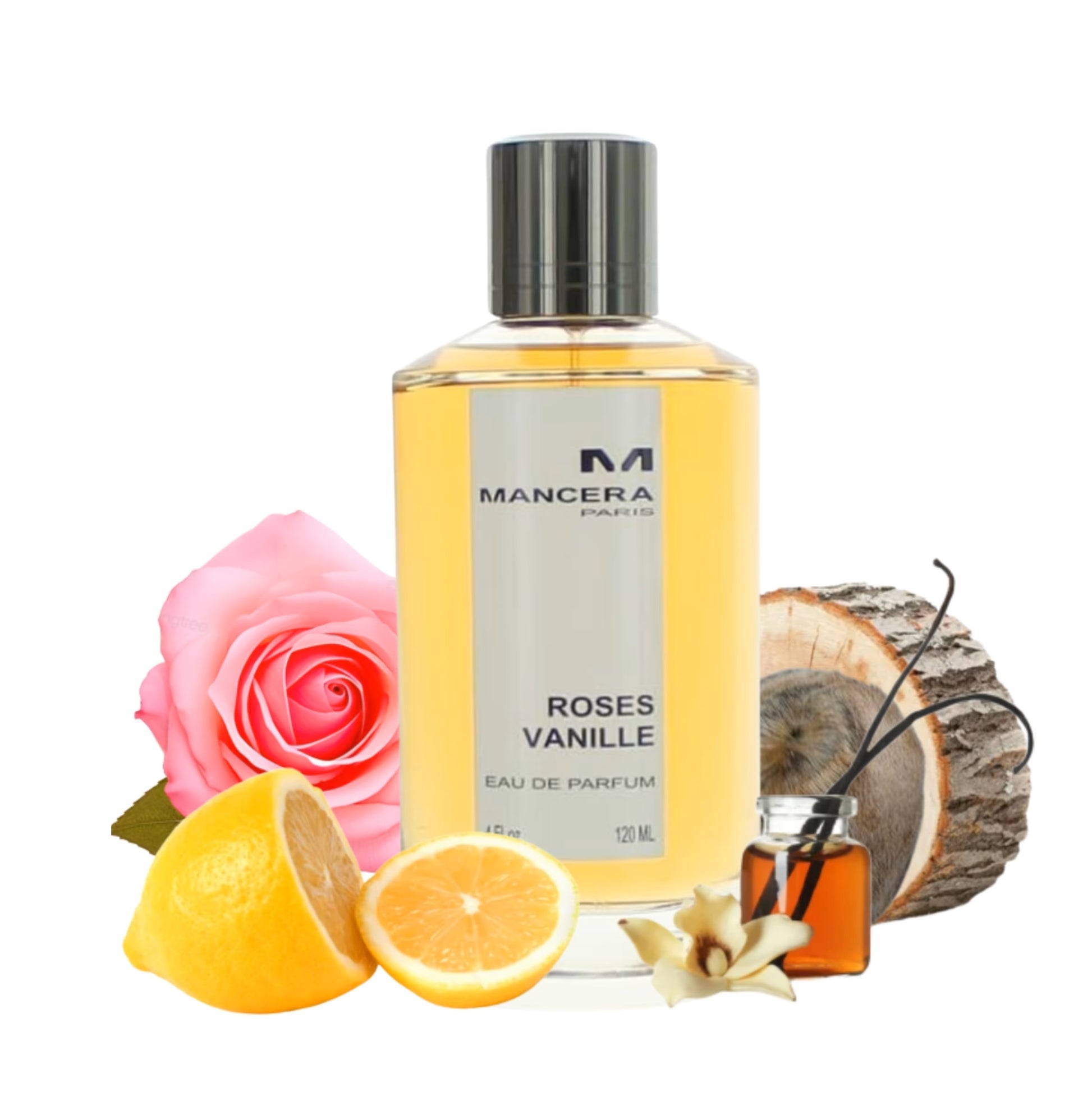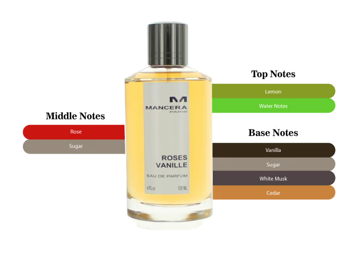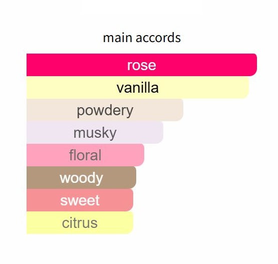 Roses Vanille  begins with top notes of refreshing Calabrian lemon, which provide a bright and invigorating opening. As the fragrance evolves, the heart notes of Turkish Delight and Rose emerge, adding a sweet and floral touch that is both enchanting and sophisticated. Finally, the base notes of Cedarwood, Vanilla, and White Musk create a long-lasting and comforting finish that lingers on the skin.