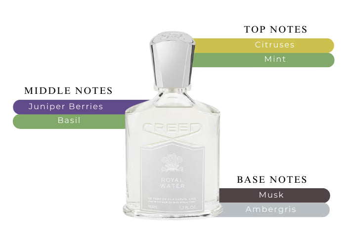 Royal Water opens with an effervescent citrus infusion and a brisk hint of peppermint as its top notes. These vivacious tones are followed by the heart notes of the juniper berry and basil, lending a crisp yet subtle edge to the fragrance. Base notes of musk and ambergris round out the scent, adding a depth and complexity that lingers throughout the day.