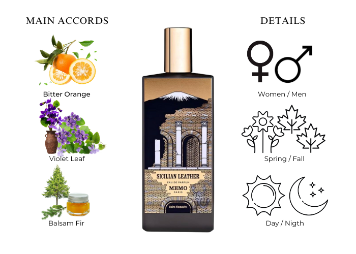Memo Sicilian Leather artfully blends refreshing notes of citrus, woods, and spices, resulting in a distinctive olfactory experience. The top notes showcase a fusion of leather, lemon, bitter orange, and cedar, while the heart notes feature bergamot, lime, cardamom, coriander, and violet leaf. The base notes include balsam fir, guaiac wood, akigalawood, and patchouli.