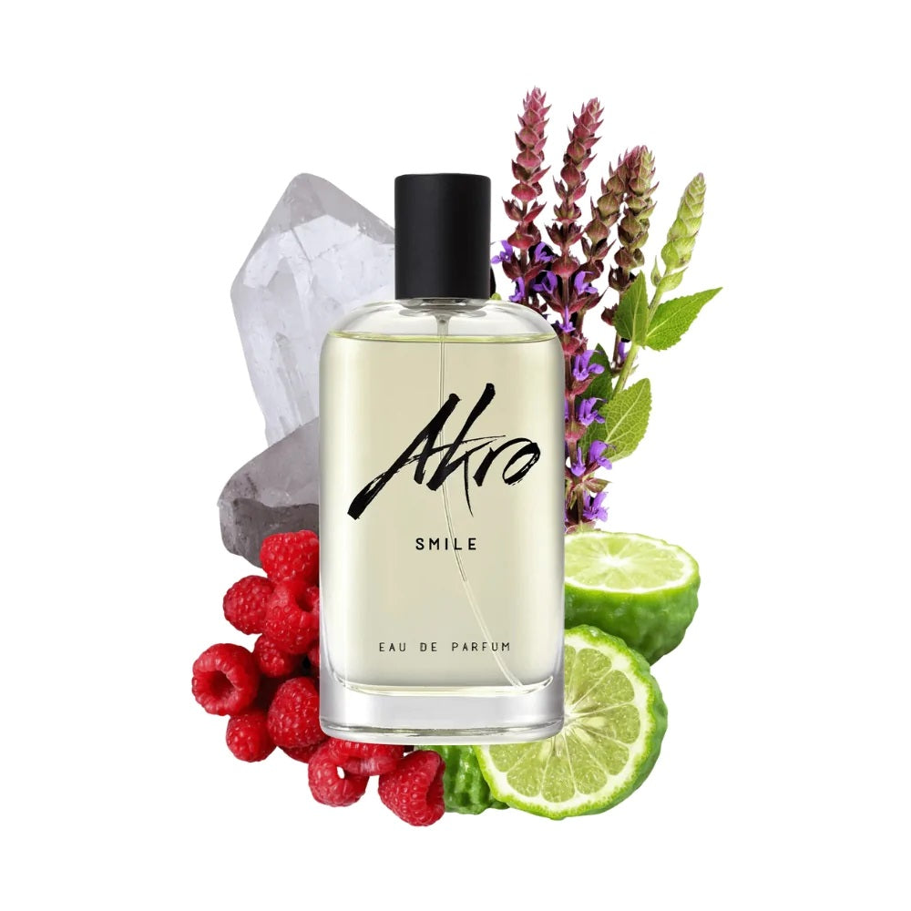 Smile by Akro, you will be enveloped in a harmonious blend of invigorating citrus notes, delicate florals, and warm, comforting accords. Embrace the charm of this fragrance that invites you to savor life's most delightful moments.