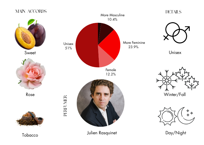 Made for both women and men, Tabac Rose is a spicy-floral scent with notes of Italian lemon and plum opening out into cinnamon with sweet undertones and a base of patchouli and tobacco absolute.
