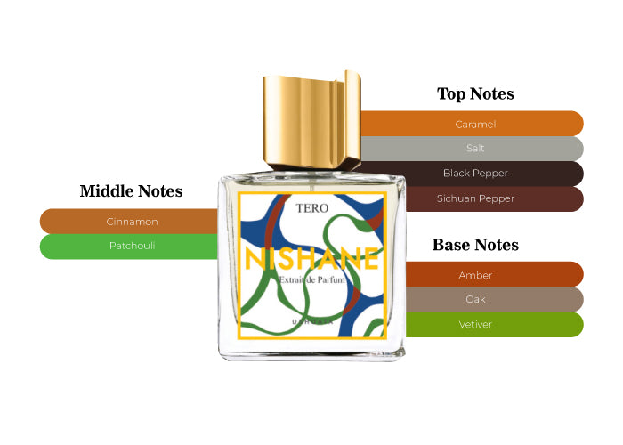 Tero by Nishane opens with top notes of caramel, salt, black pepper, and Sichuan pepper. The fragrance then transitions to a heart of cinnamon and patchouli, ultimately settling into a base of amber, oak, and vetiver. With above-average projection and longevity, Tero serves as a lasting reminder of the Corsican gardenia, providing an aromatic experience that spans from day to night across all seasons.