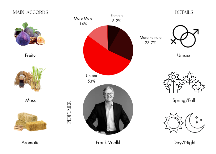The Noir 29 by Le Labo begins with a vibrant blend of fig, bay leaf, and bergamot. The heart reveals a warm combination of cedar, vetiver, and musk, while the base notes add a delicate touch of tobacco and hay. The Noir 29 harmoniously merges depth with freshness, softness with strength, creating a distinctive and captivating fragrance that exudes sophistication and charm.