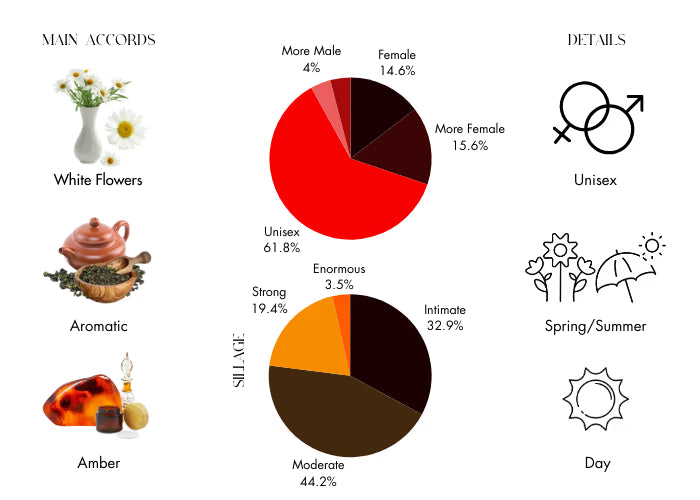 The Time reflects the creators' profound passion for perfume and their unwavering commitment to sourcing the finest ingredients. It opens with a vibrant, citrusy bergamot note, perfectly complemented by wormwood and chamomile. The floral heart transitions into a musky, woody base, making it suitable for any occasion, day or night, throughout the year. The Time captures the essence of the Orient, presenting a timeless scent that transcends gender.