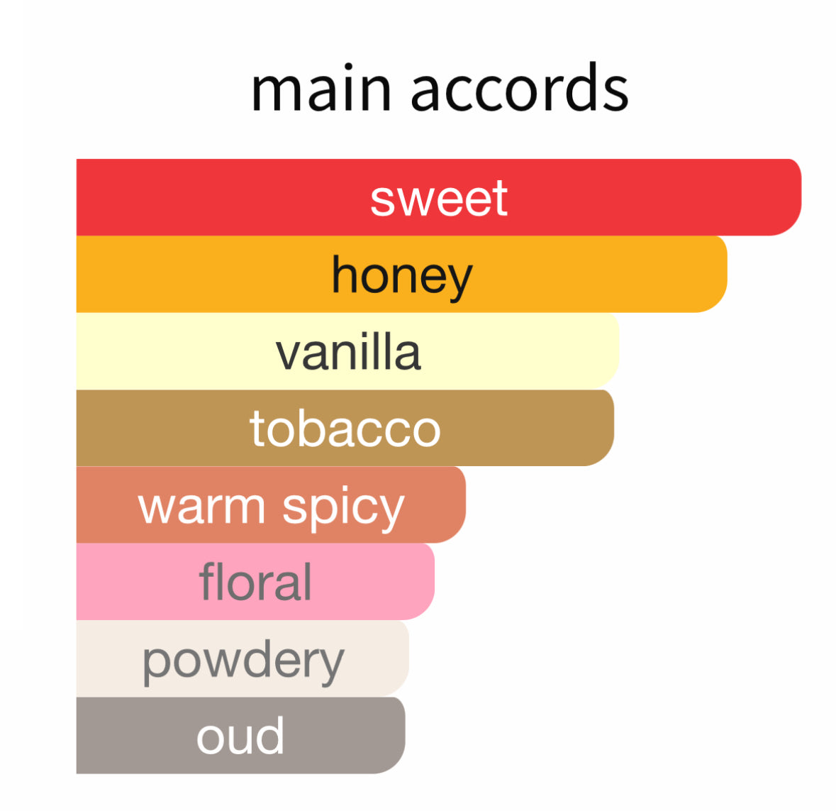 At its heart, the scent reveals a deep and comforting mix of tobacco, creamy tonka bean, soft vanilla, and a unique touch of nutty sesame. These middle notes add depth and richness, giving the fragrance its signature character. As it settles on the skin, base notes of luxurious agarwood (oud) and smooth sandalwood create a sensual and long-lasting finish.