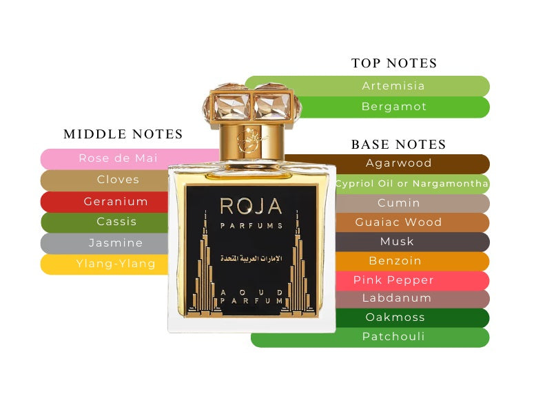 United Arab Emirates opens with the invigorating top notes of Artemisia and Bergamot, creating a captivating and fresh introduction. As the fragrance develops, the heart notes of Rose de Mai, Cloves, Cassis, Jasmine, Geranium, Labdanum, and Ylang-Ylang unfold, painting a vivid tapestry of floral and spicy accords that enchant the senses.