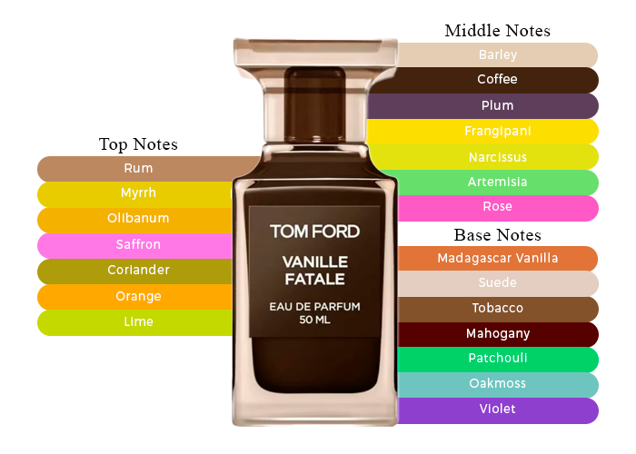 Vanille Fatale 2024 creates an unforgettable first impression with a blend of myrrh, rum, olibanum, coriander, saffron, orange, and lime. As the fragrance develops, the heart notes reveal a captivating mix of barley, coffee, frangipani, plum, narcissus, artemisia, and rose. This combination adds depth and sophistication, ensuring that Vanille Fatale 2024 stands out from other fragrances.