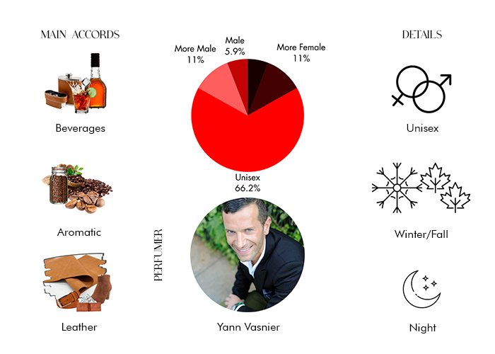 The base notes of Madagascar vanilla, suede, tobacco, mahogany, patchouli, oakmoss, and violet provide a warm and enduring finish. These notes linger on the skin, leaving a lasting impression that is both comforting and seductive.