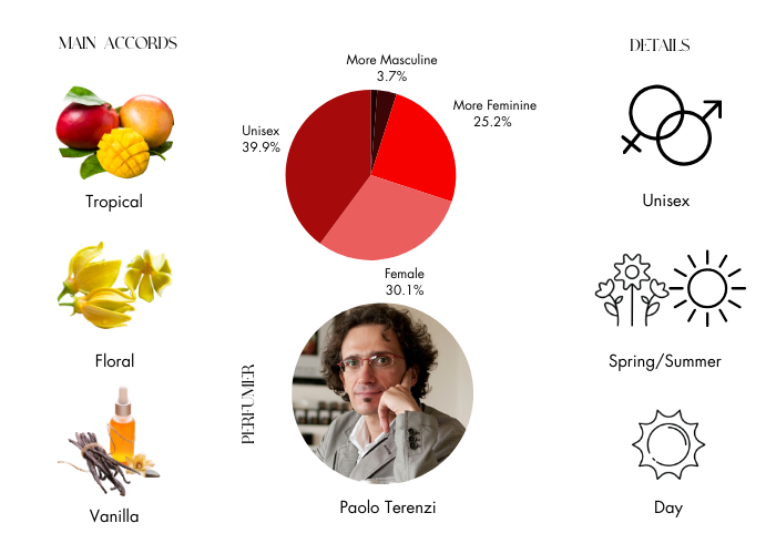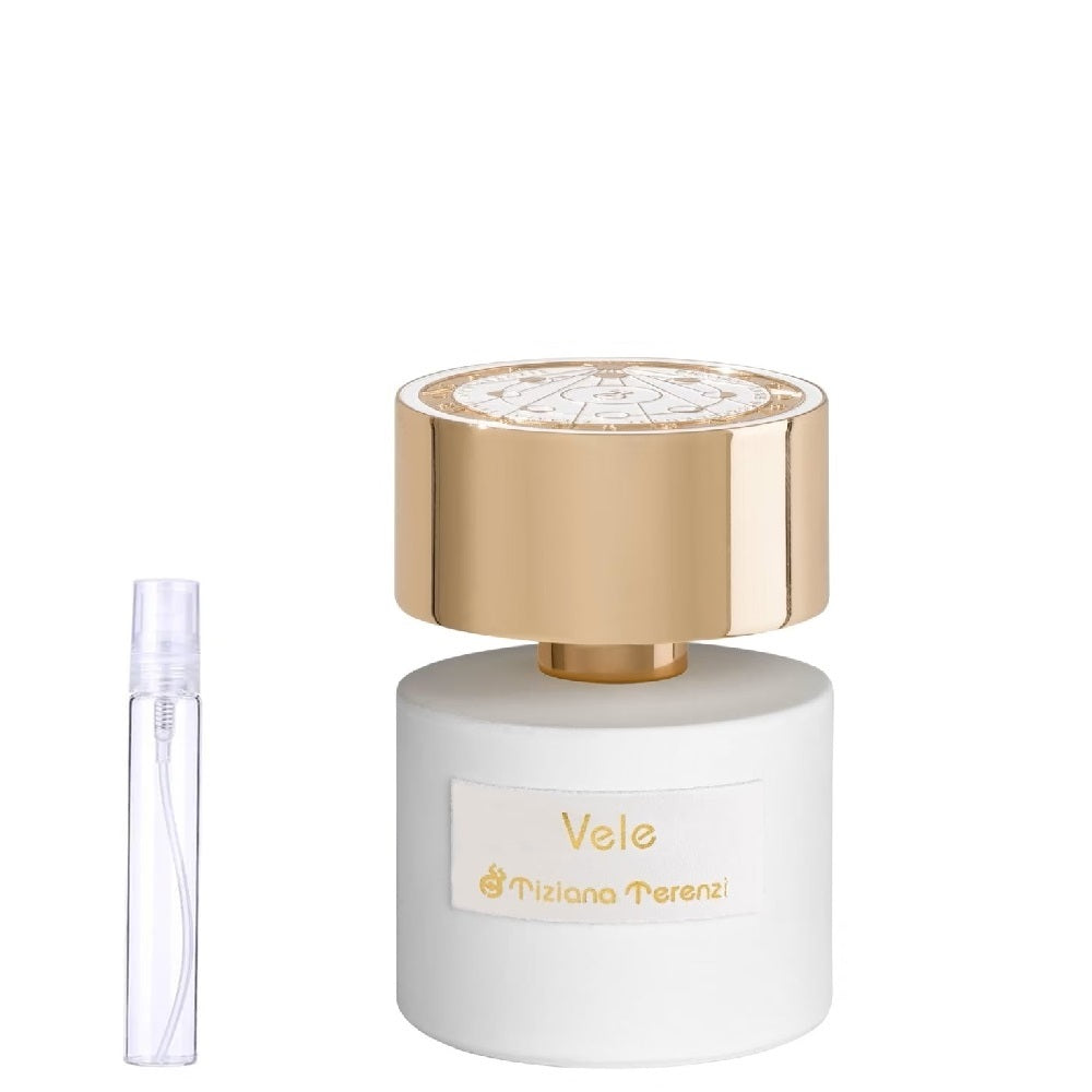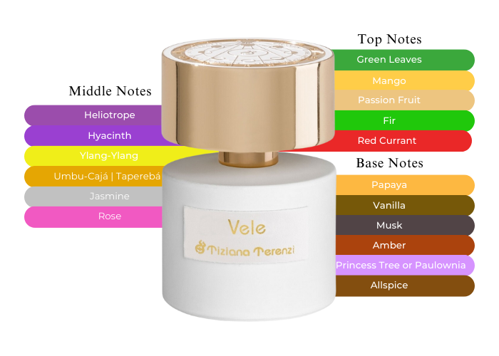Tiziana Terenzi Vele opens with vibrant notes of green leaves, passion fruit, mango, red currant, and fir, transitioning into a heart rich with heliotrope, hyacinth, umbu-caja, jasmine, ylang-ylang, and rose. Inspired by the beauty of a sparkling, starry sky, it combines luscious and exotic elements to create a delightful aroma that is perfect for any time of year.