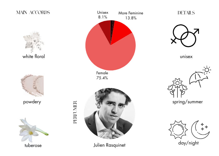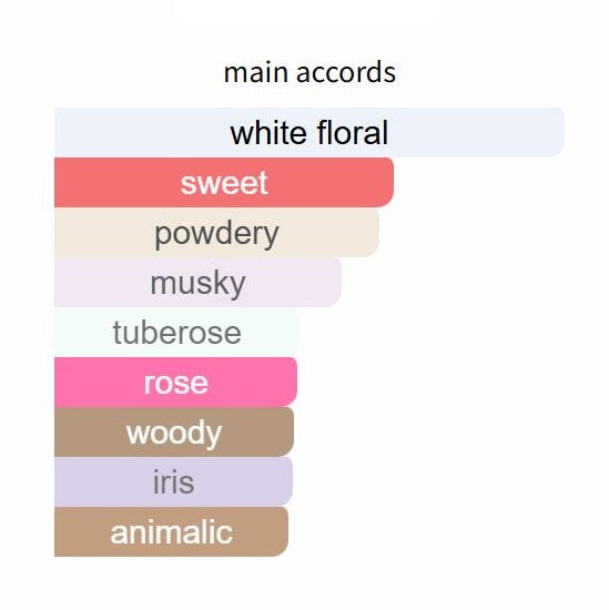 The base notes add depth and warmth to the fragrance with the creamy richness of musk, the sweet allure of praline, and the earthy tones of sandalwood. Hints of orange blossom and iris further enhance the complexity and longevity, ensuring that this scent lingers beautifully on your skin.
