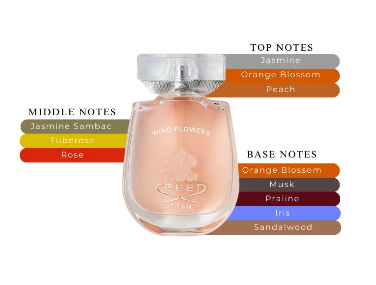 Wind Flowers offer a delightful introduction with a fresh burst of jasmine, juicy peach, and the delicate sweetness of orange blossom.