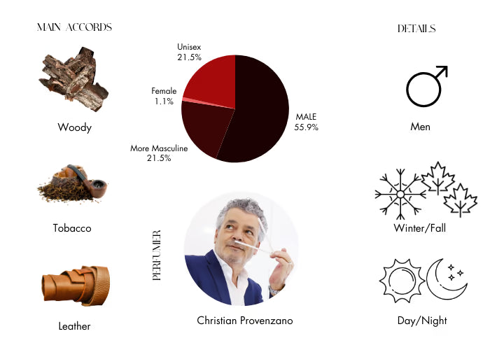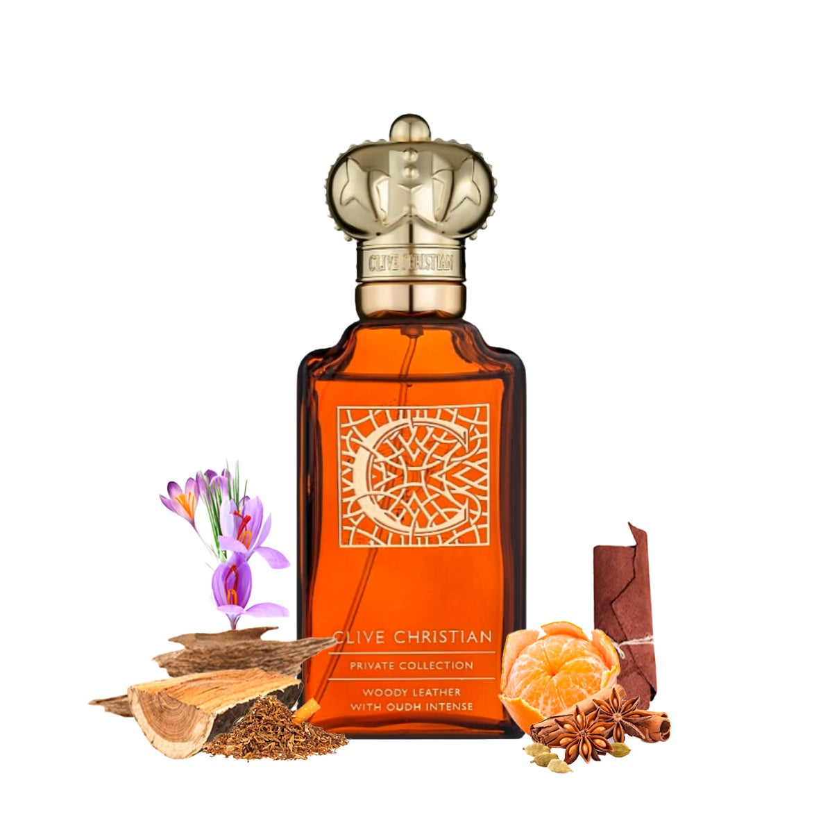 Clive Christian's Private Collection C Woody Leather With Oudh Intense features a rich, warm, and alluring smoky aroma, beginning with top notes of oud and mandarin orange. It embodies an amber woody scent that leaves a unique and captivating mark on the skin. Part of the C Collection, it draws inspiration from the rugged Scottish coastline of Clive Christian's upbringing, infusing the fragrance with an exotic and worldly character.